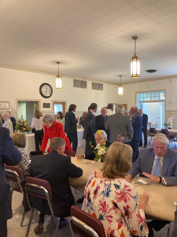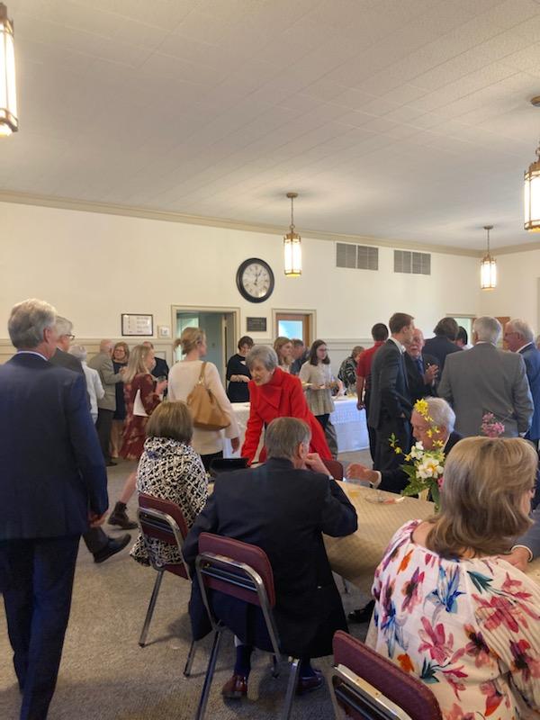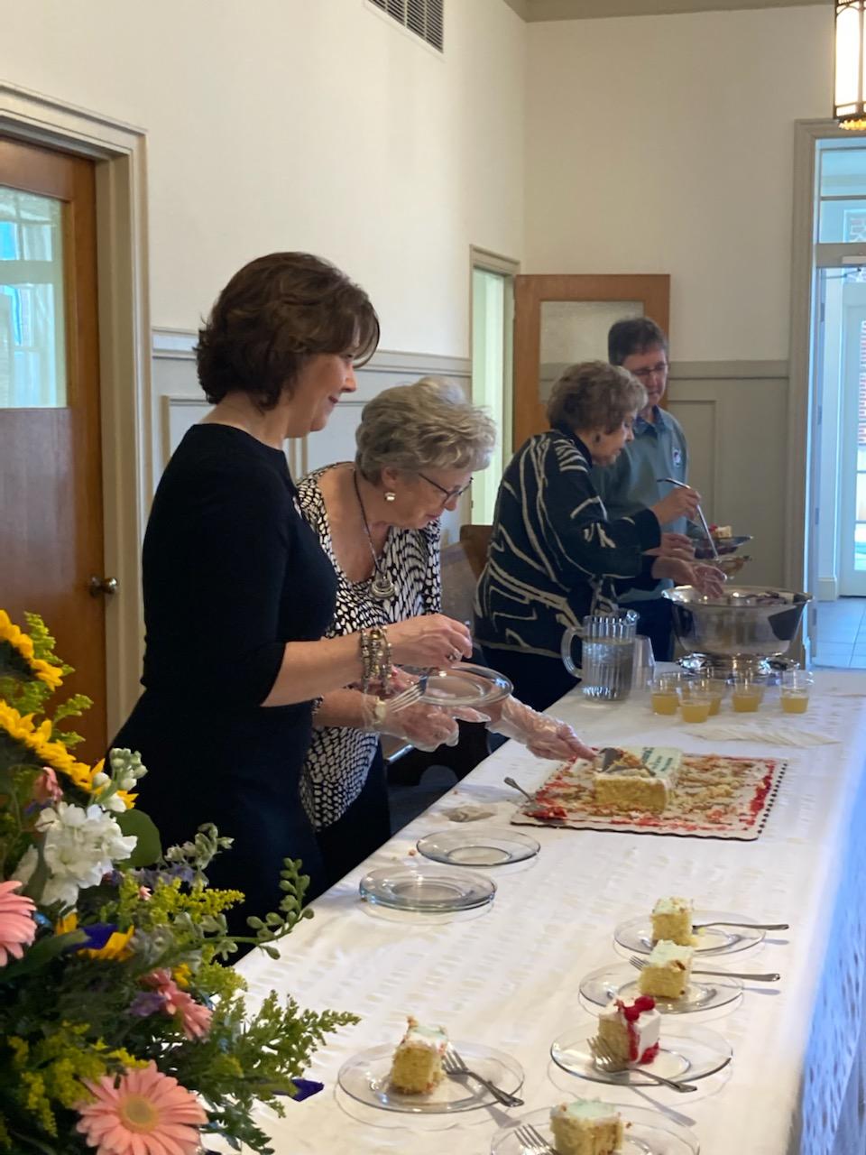 - Lori Burnette, Linda Mabe, and Maxine Galloway serving cake and punch
